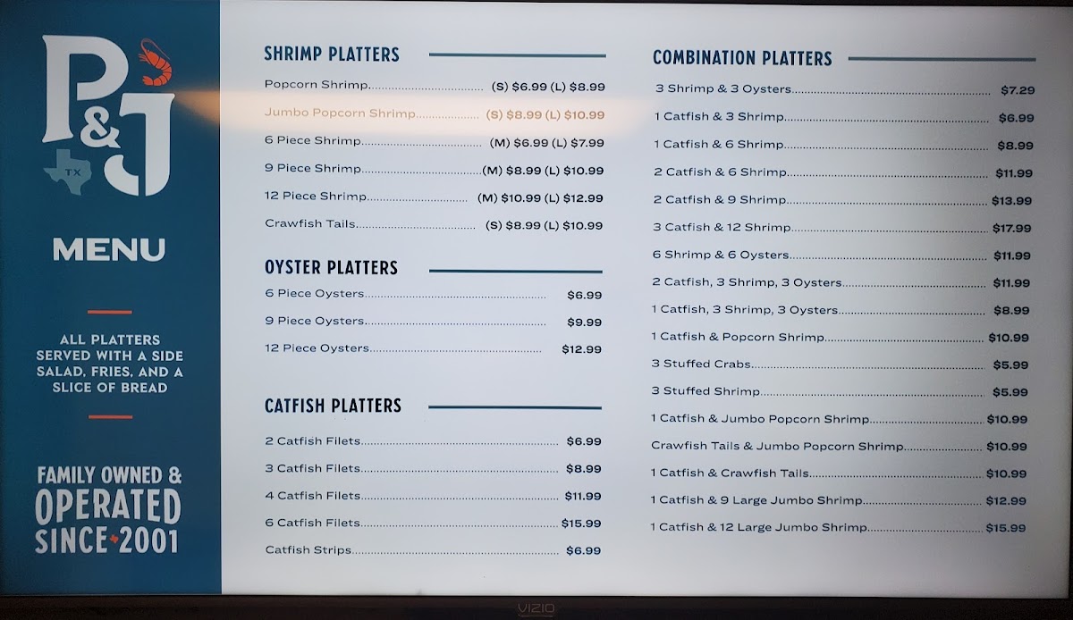 Welcome to P & J Seafood, a gem nestled at 3301 Pure Atlantic Rd, Groves, TX 77619. This establishment takes pride in delivering farm-fresh flavors and quality seafood to its beloved community. When you step inside, you're greeted by a warm ambiance fueled by a dedicated family that runs the place like a well-oiled machine. Their commitment to consistency is evident, making each visit a delightful experience.